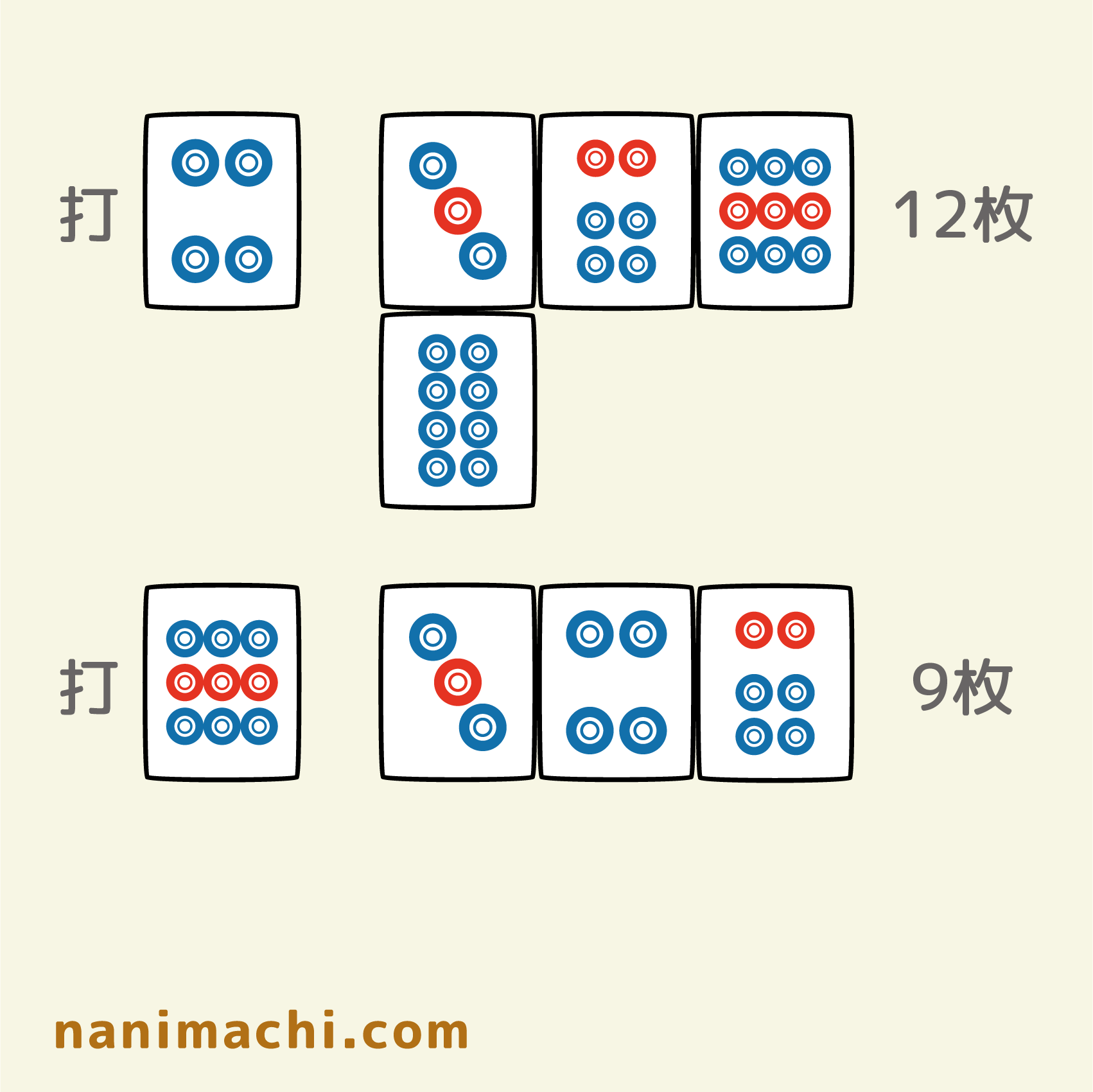 槓子が2つある複雑なメンチンも槓子部分を分けて考えれば簡単(?)